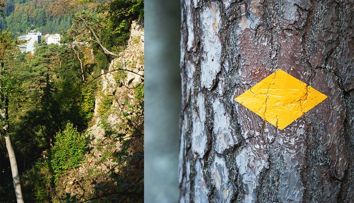 Diese Wanderung führt Sie in ein kantonales Naturschutzgebiet. In diesem Gebiet verzichtet man auf die Nutzung des Waldes. In den steilen Hängen und auf Felsbändern dürfen die Bäume stehen bleiben bis zu ihrem natürlichen Tod. Hier fühlt sich auch eine Gämskolonie wohl. Nehmen Sie Rücksicht auf dieses ängstliche Tier und bleiben Sie auf dem markierten Weg.