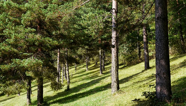 Allmählich beginnt sich der Wald zu lichten. Die Waldweide der Pfauenziegen ist erreicht.
