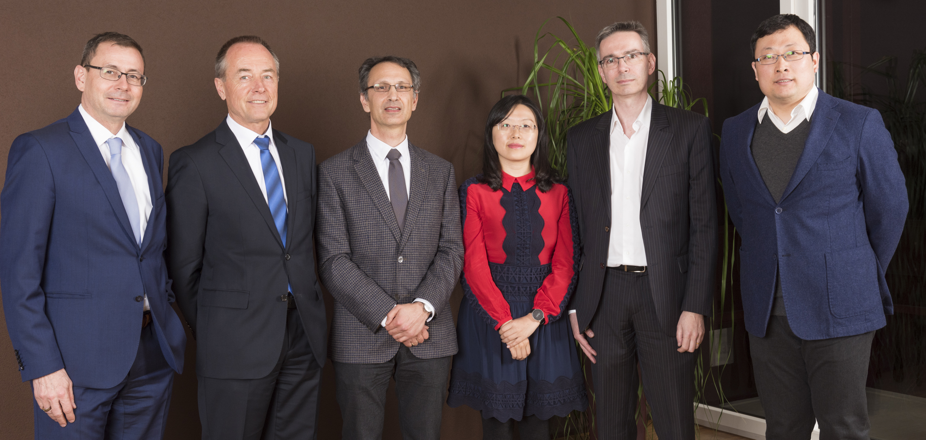 Klinik Barmelweid und Huawei freuen sich über die zukünftige Zusammenarbeit (v.l.n.r.): Dr. Daniel Heller (VR-Präsident), Beat Stierlin (CEO), Prof. Dr. med. Ramin Khatami (Leiter Schlafmedizin), Wenjuan Chen (Senior Engineer Huawei), Eric Masera (Business Development and Technology Planning manager Europe Huawei), Zhongxing Zhang (Forschungsassist). Foto: Werner Rolli.