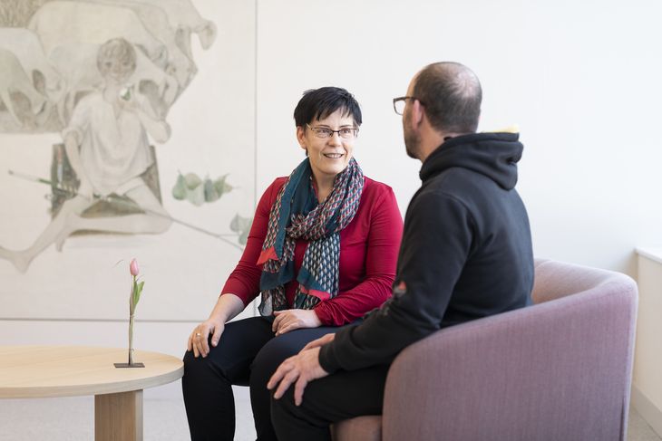 Beratung und Begleitung in der Tabakentwöhung: Susann Koalick, Leiterin der Nikotinberatung der Barmelweid, im Gespräch mit einem Patienten.